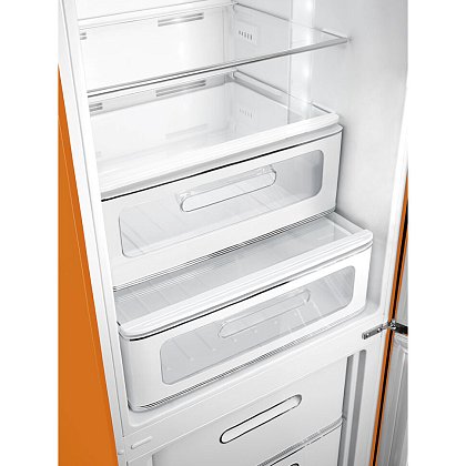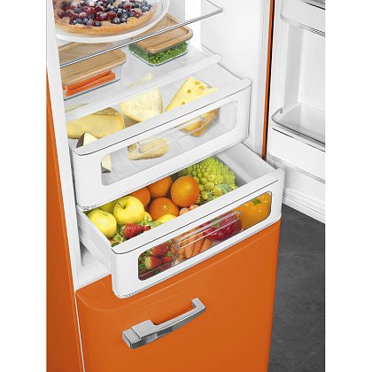 Холодильник SMEG FAB32ROR5 предназначен для кратковременного хранения различных готовых блюд, охлаждённых продуктов и напитков, а также для заморозки и длительного хранения замороженных продуктов и полуфабрикатов. Полки изготовлены из закалённого стекла, благодаря чему выдерживают большую нагрузку. Полки на дверцах выполнены из пластика. Данная модель идеально подойдёт для авторских интерьеров в уникальном стиле или для кухонь в классическом исполнении.