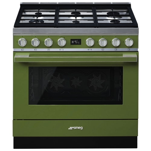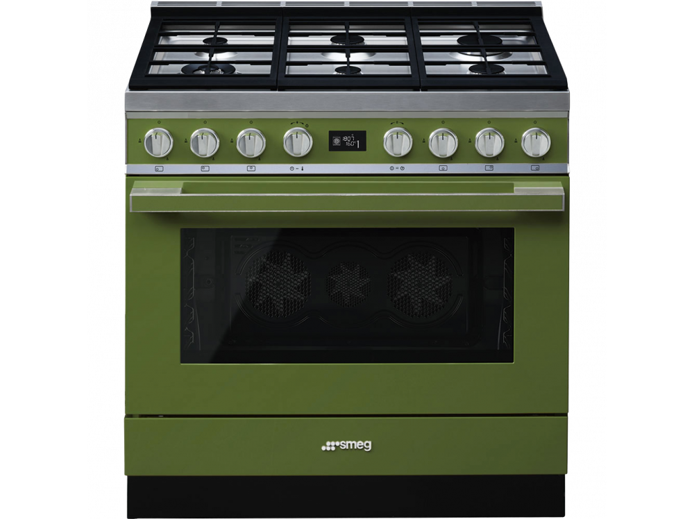 Варочный центр Smeg изысканного оливкового цвета органично впишется в любом современном кухонном интерьере с моделями серии «Portofino». Конструкция предусматривает наличие газовой варочной поверхности и электрического духового шкафа, что гарантирует комфортный процесс приготовления тех или иных блюд. Для безопасности обращения с газом предусмотрена специальная система по перекрытию газа в момент утечки. Автоматические программы духовки используются для приготовления мяса и рыбы различных размеров.