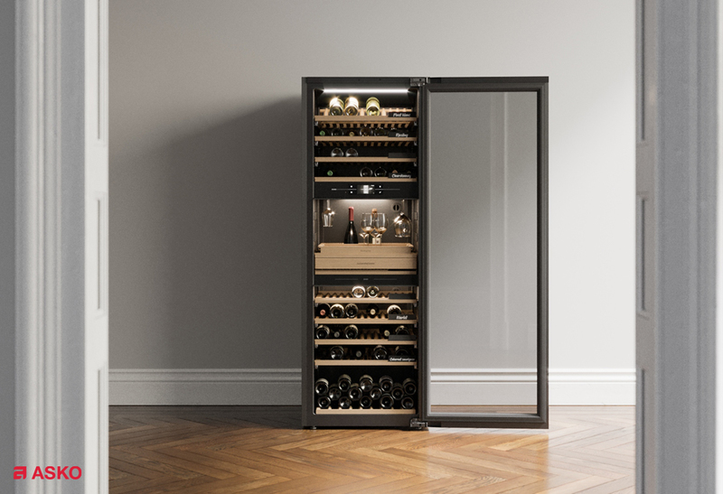 Винный шкаф Asko WCH3119422G представляет собой отдельностоящий прибор, обеспечивающий отличные условия для хранения напитков. Внутренняя его часть разделена на три температурных зоны, что позволяет соблюдать индивидуальный климатический режим и обслуживать различные сорта. Каждая из частей корпуса имеет функциональную светодиодную подсветку на потолке и на нижней стороне обоих изоляционных барьеров. Благодаря использованию подобного освещения вино не подвергается воздействию тепла. Интенсивность и временной интервал работы может настраиваться в соответствии с требованиями.